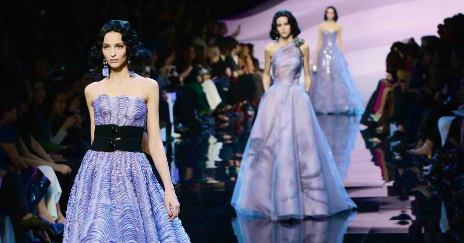Il color malva fa da passepartout alla passerella della collezione alta moda Giorgio Armani Privè.